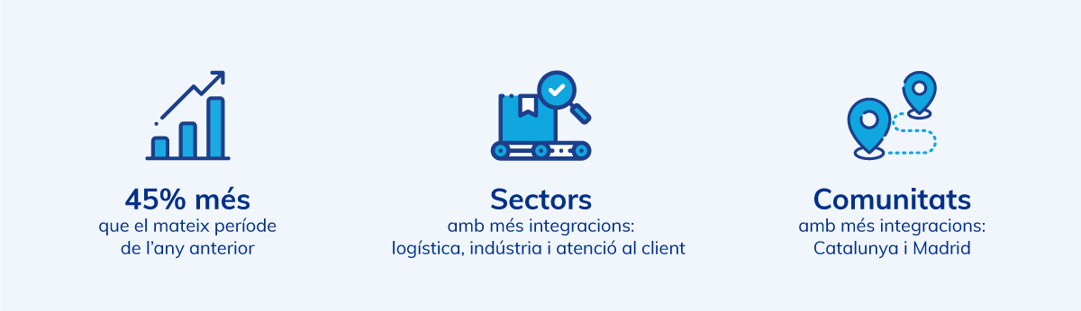 - Catalunya és la comunitat que concentra la majoria d’integracions amb 68 insercions, seguida de Madrid amb 31.