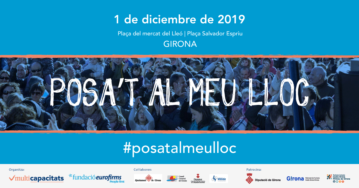 “Posa’t al meu lloc”, que comptarà amb més de cinquanta voluntaris, és una jornada organitzada per Multicipacitats i la Fundació Eurofirms, que patrocina la Diputació de Girona i el Patronat de Turisme Costa Brava Girona, i que compta amb el segell Turisme Inclusiu Pirineu de Girona, i el suport de l’Ajuntament de Girona, el Consell Comarcal de Gironès, DipSalut i Válida sin Barreras.